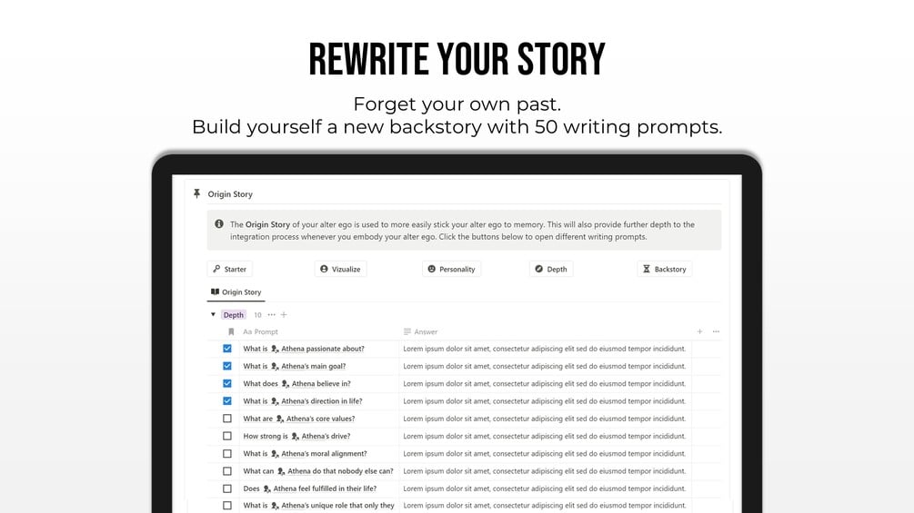 - The Alter Ego Hub, which is a creative platform on Notion for you to build and practice your alter ego.