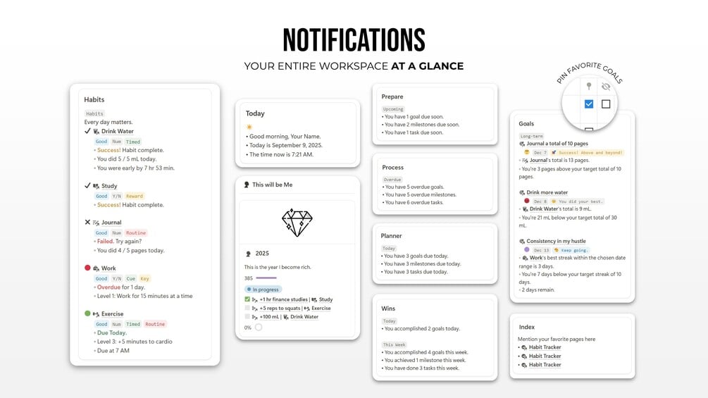 The superior Notion goal tracker, where your goals directly access your habit tracker data.