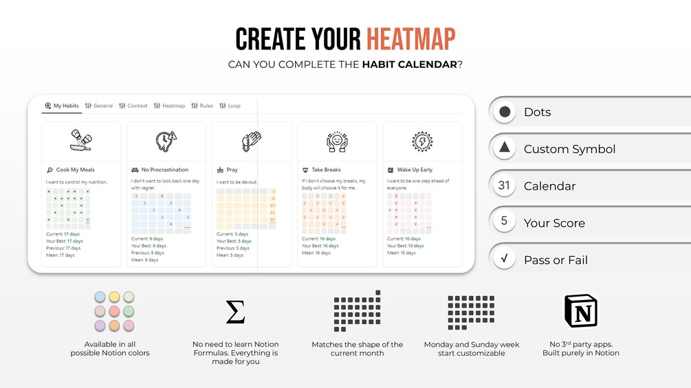 Notion's prestige habit tracker collection, available in 5 different variants.