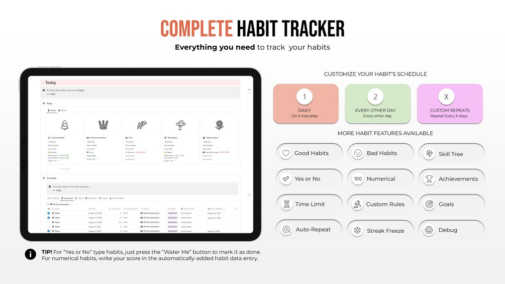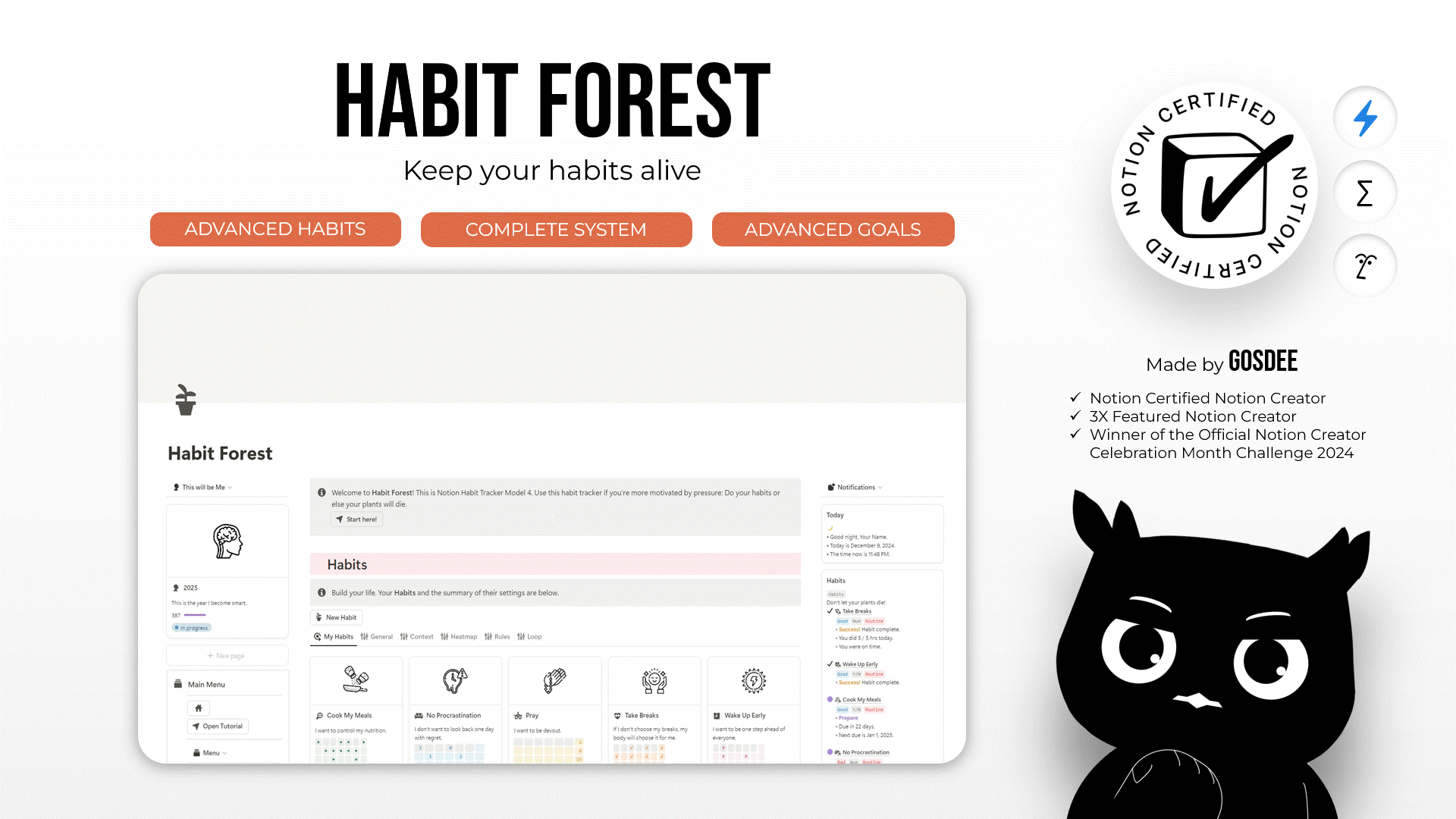• Habit Forest (Notion Habit Tracker: Model 4), the high-end habit tracker for growing and systemizing your habits inclusive of all aforementioned auxiliary features in one cohesive Notion system