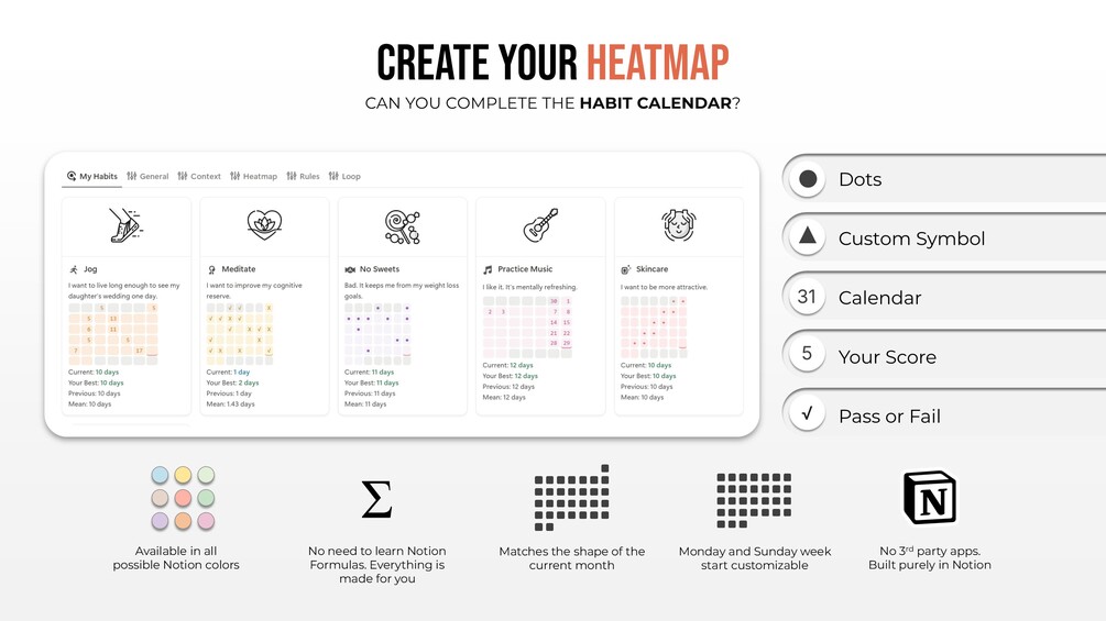 - Casual Habit Tracker (Notion Habit Tracker: Model 5), the high-end habit tracker for building and systemizing your habits inclusive of all aforementioned auxiliary features in one cohesive Notion system