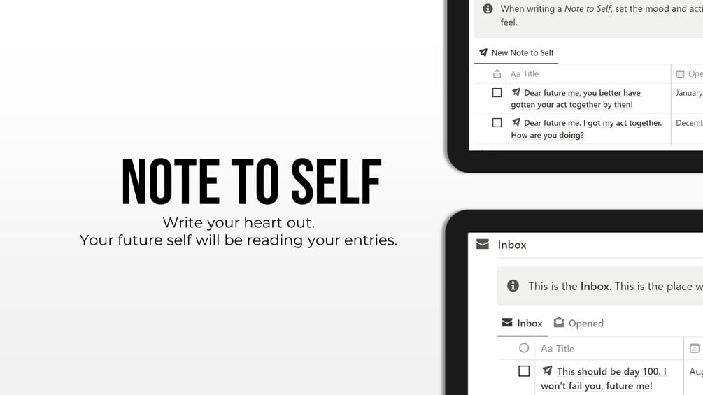 - Note to Self + Inbox — Craft a digital time capsule of your thoughts, wishes, and aspirations for your future self. Read them as a prompt when the opening date arrives