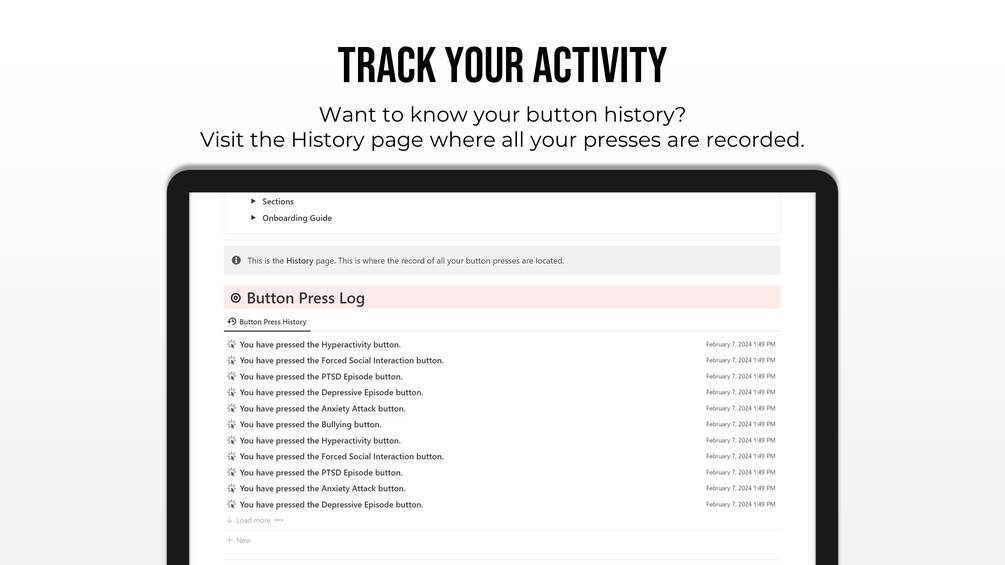 Have you been pressing a button too much? Track your activity in the History page, where all your presses are recorded.