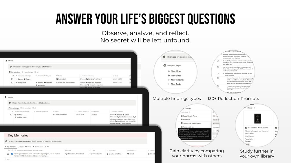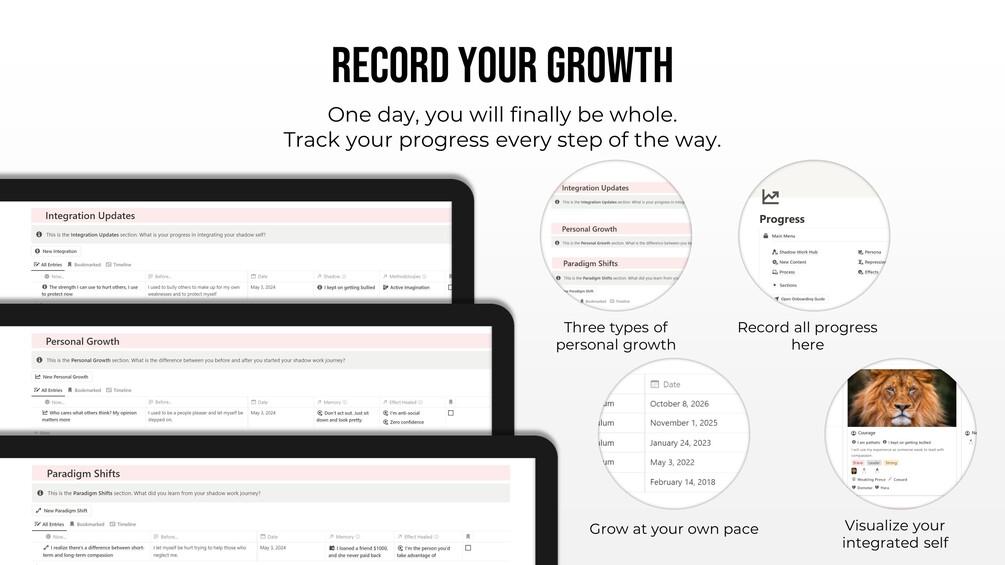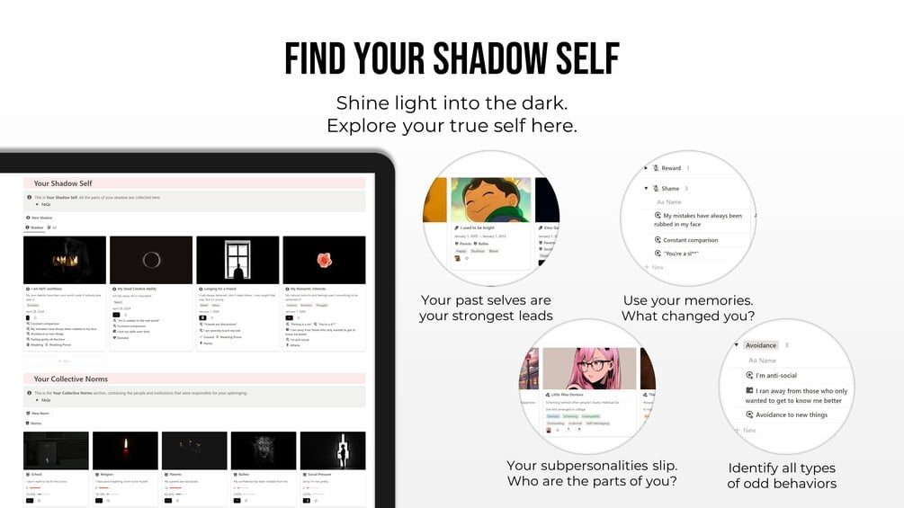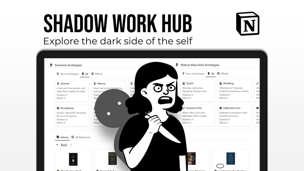 Use the Shadow Work Hub, the ultimate platform for all of shadow work in one Notion template.