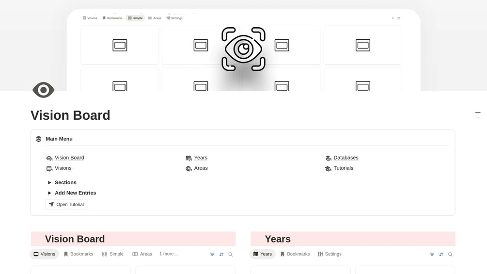 A classic vision board for Notion by Gosdee.